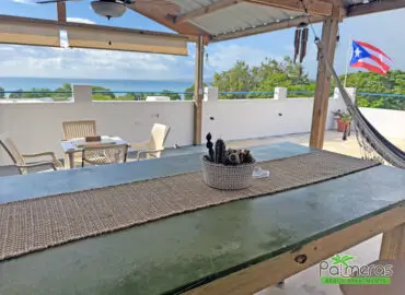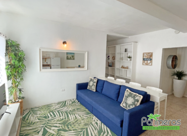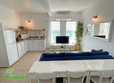 Somewhere in the Caribbean, there is a magical place called Palmeras. From the moment you arrive, you know that you are in a special place.The apartment is designed to make you feel a tropical experience with an impressive view of the sea and the lake. Vista Mar’s tropical and rustic minimalist beach style transports you to a world of tranquility, serenity, and peace. The soft warm colors of the wood and the blue sky envelop you in a cozy atmosphere that will make you feel like a whole experience.