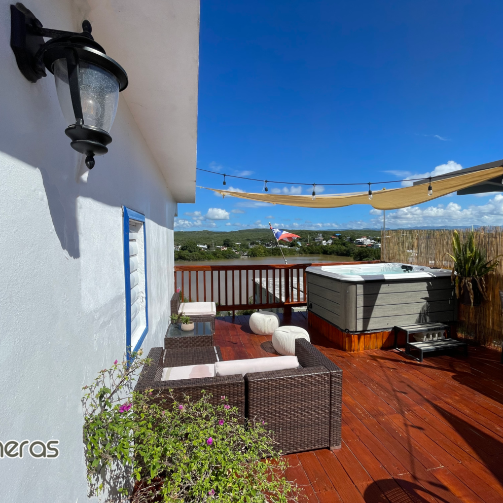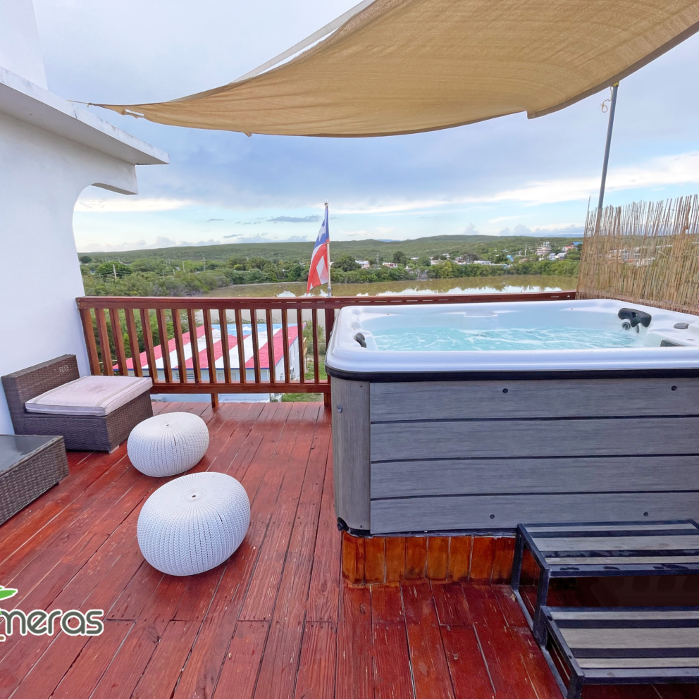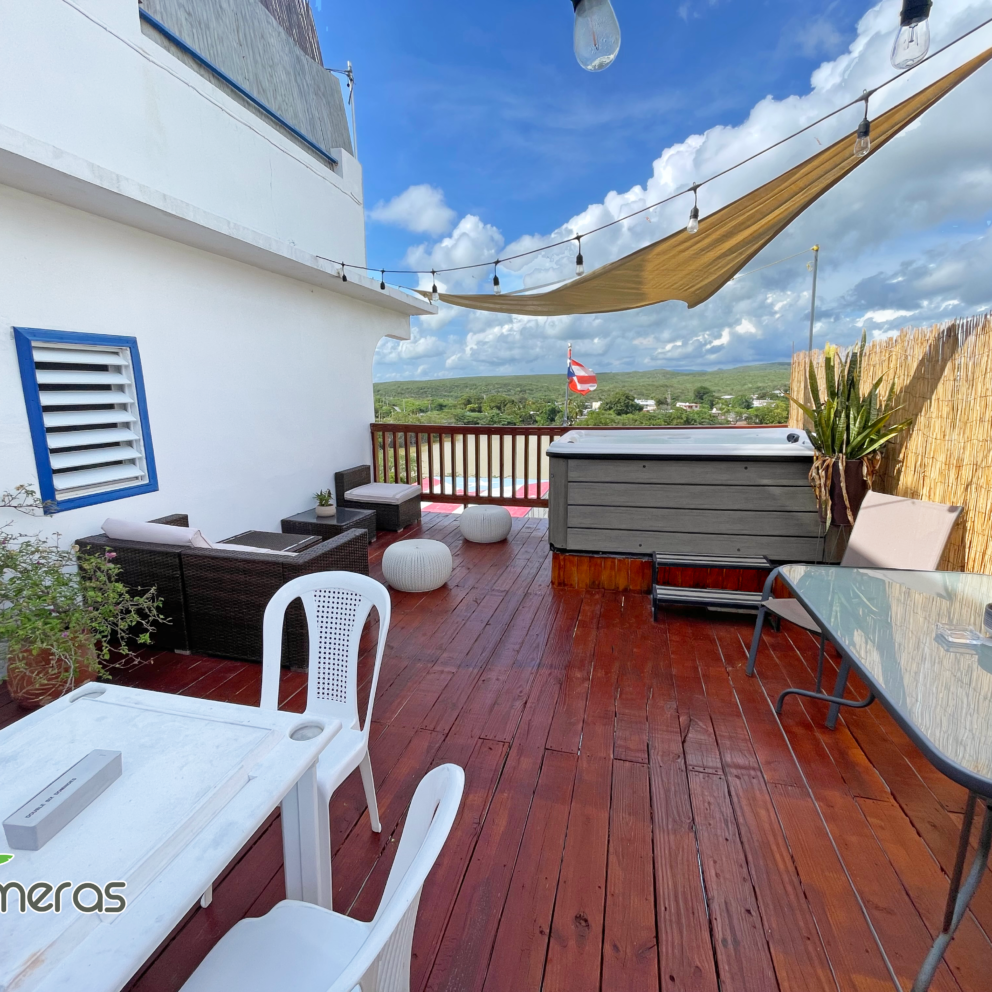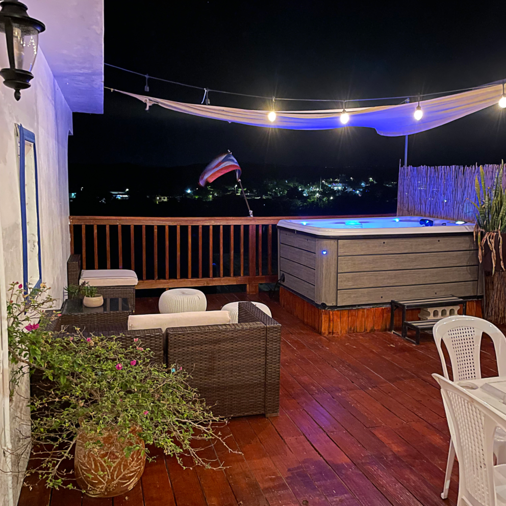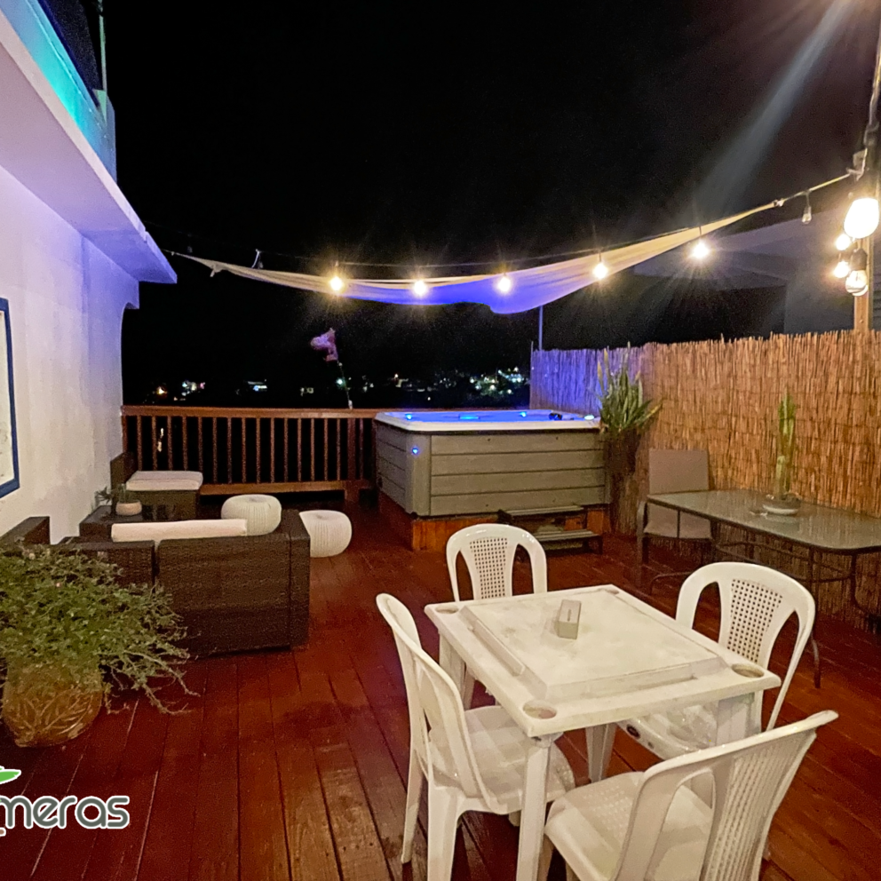 - Amenities: Air Conditioner, BBQ / Grill, Dominoes Table, Fast Wi-Fi Internet, Jacuzzi / Hot Tub, Kitchen, Parking, Private Terrace, Water Heater