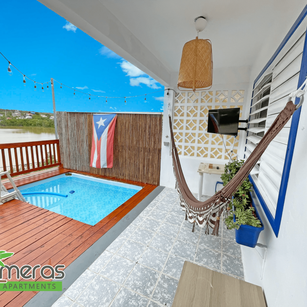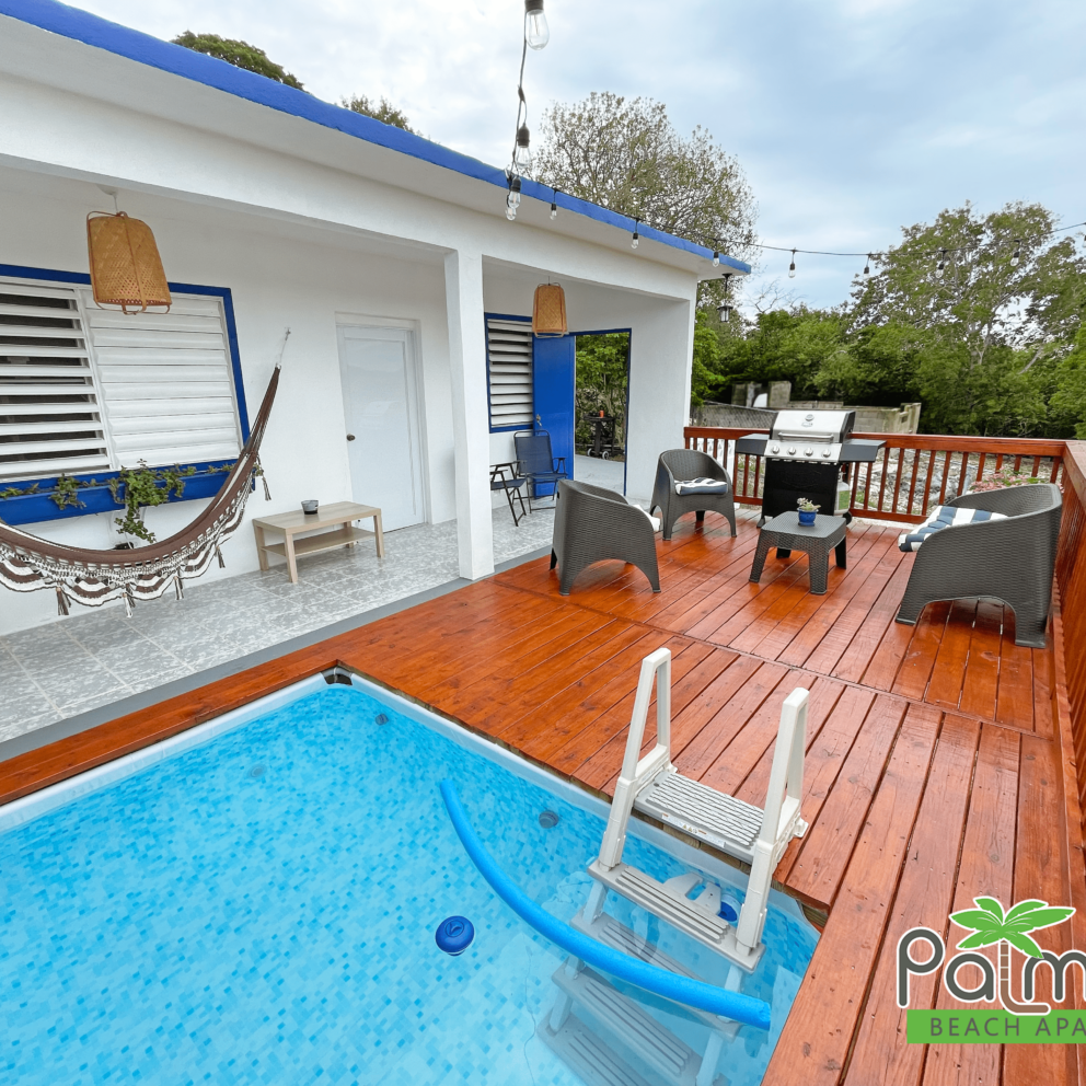 - Amenities: Air Conditioner, BBQ / Grill, Dominoes Table, Fast Wi-Fi Internet, Hammock, Kitchen, Parking, Pool, Private Terrace, Water Heater